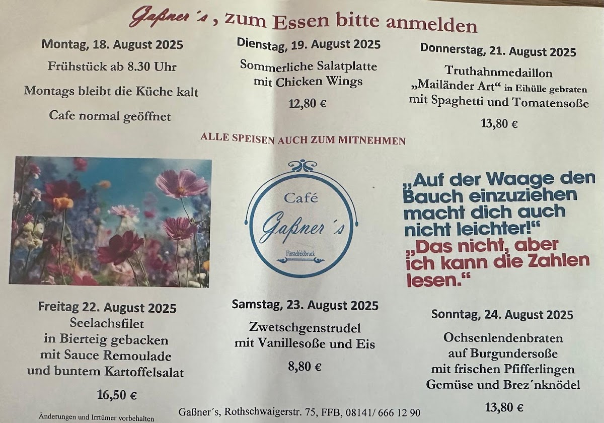 If you happen to be in the area, why not treat yourself to a moment of relaxation at Gaßner´s Cafe? From the friendly greetings to the delicious offerings and beautiful outdoor settings, it promises an experience worth savoring.